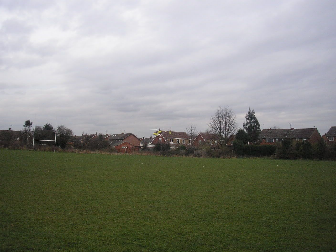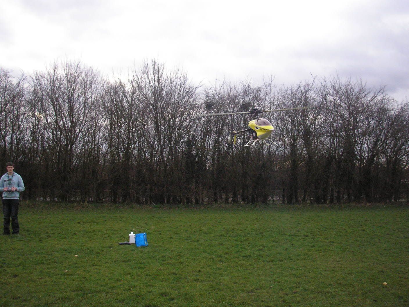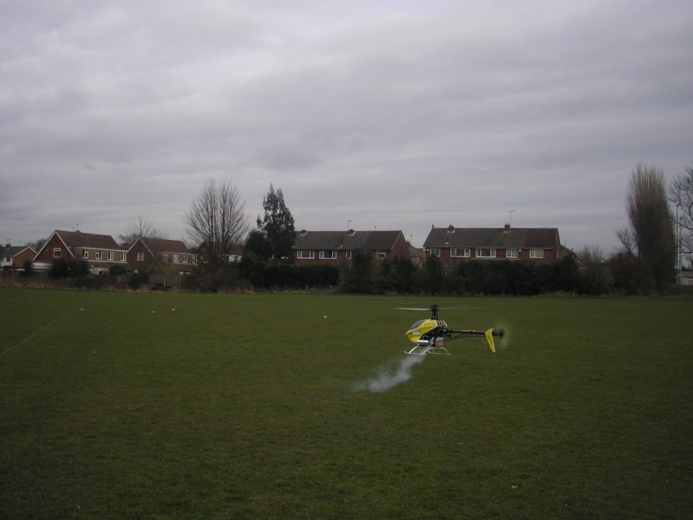 Now i flying and then The BLOODY MUFFLER HANGS OFF! and im loosing some power so i hit throttle hold and glide it down... so ive lost a muffler mount screw.. an burnt my finger