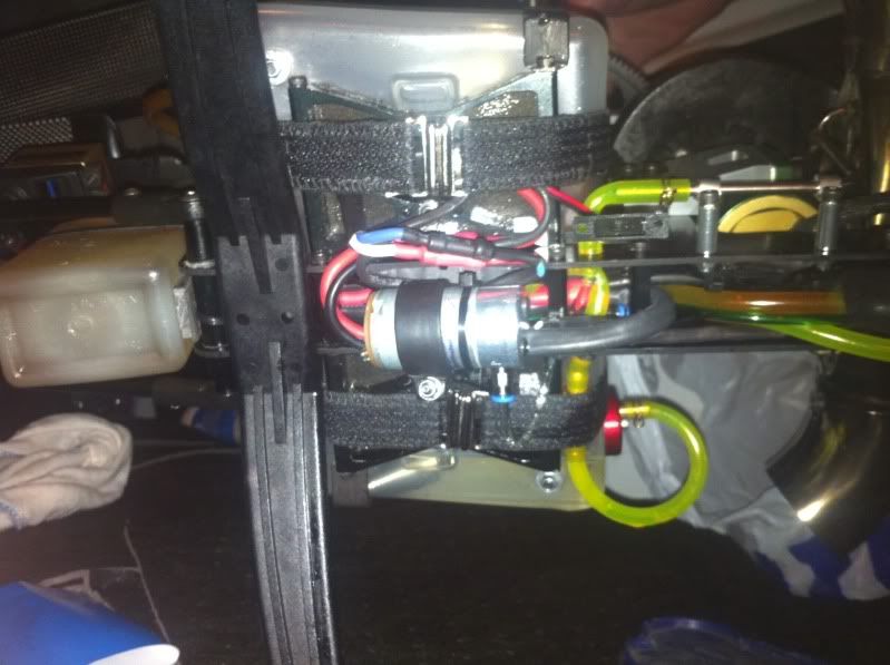 We tested it under the cover of darkness (as no-one at the club knew we were working on it and wanted to debut it as a surprise at todays bonfire/BBQ/Night flying do) just to test the thoery actually worked, which it did, very very well! Today we flew it, and after a slight bit of fiddling with the pump rate, we had it working a treat