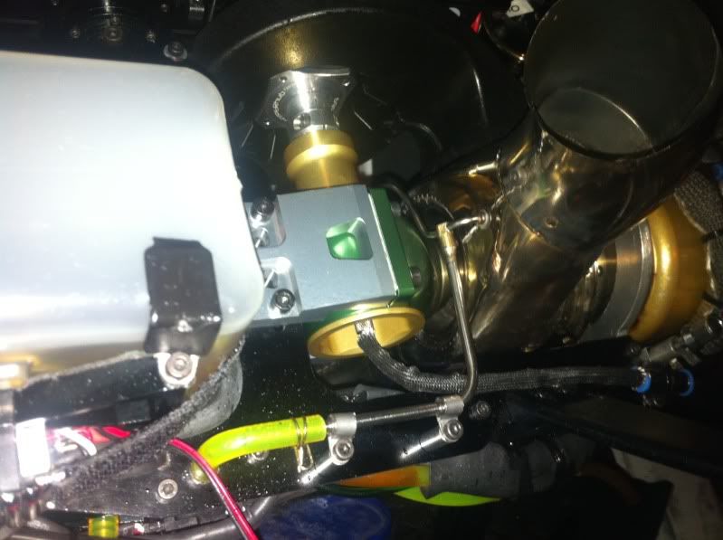 After lot's of reasearch and phone calls, we settled on a wren turbine fuel pump as the smoke oil pump, powered by a (massively overkill!) 25a brushed speed controller. The physical instalation was a bit of a challenge, but not too bad. The pump was mounted in the middle of the frames underneath the tanks, and the esc hidden under a tank strap. The pump feeds the OptiSmoke in to a stainless steel tube in to each side of the turbine exhaust housing, which just sprays the fluid directly on to the inside walls of the exhaust.