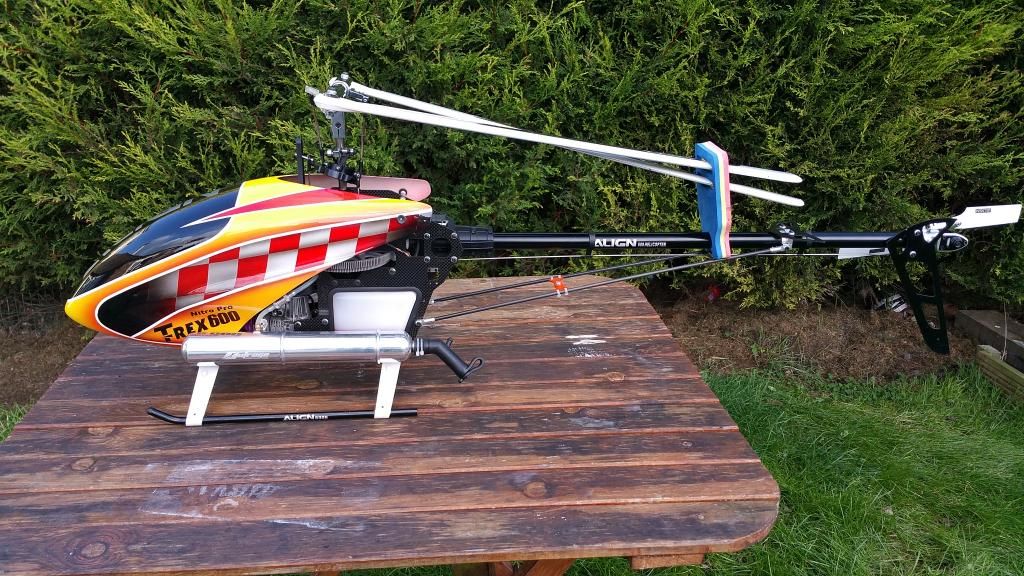 Hi all I have reluctantly decided to sell my trex 600n converted to fbl with an RJX head. The heli is in excellent condition and has been very well looked after. It has never been crashed and has recently had new bearings in the main shaft head and tail bearings. There is 2 different canopy's for it one is brand new another is new but slightly damaged from dropping the canopy. see pictures