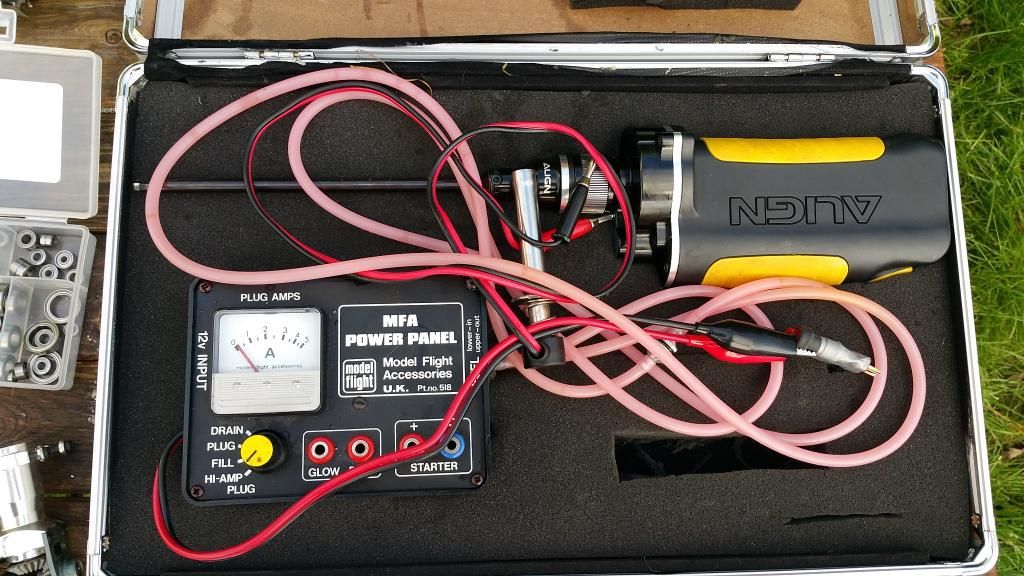 Fuel pump and glow igniter (starter and fuel/glow are neatly store in an ally case for easy use with lipo for power supply)